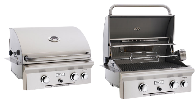 All American Outdoor Grills (AOG) are made of the finest commercial-grade stainless steel and features a large cooking surface with stainless steel rod cooking grids. Ideal for your outdoor kitchen, the American Outdoor Grill is designed and manufactured for long-lasting, top performance. Choose from three popular sizes- 36”, 30” and 24”- depending upon your cooking needs. All models give you a wide range of cooking options, from slow rotisserie cooking to high temperature searing. Create your entire meal on the versatile American Outdoor Grill!